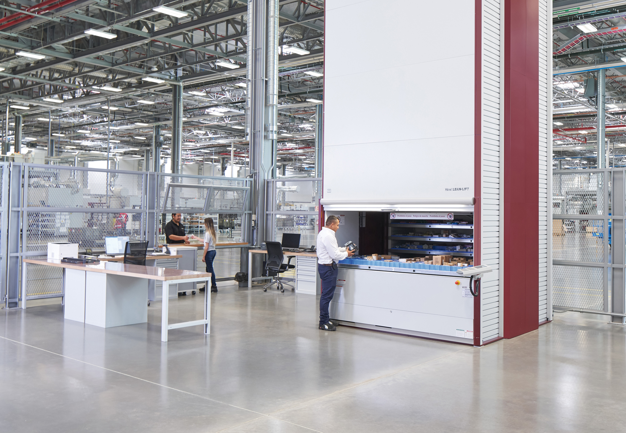 The Hänel Lean-Lift has a height of nearly 9 m and can handle a total load capacity of 60 tons – the system holds spare parts needed for production machinery. The vertical Hänel lift has a very small...