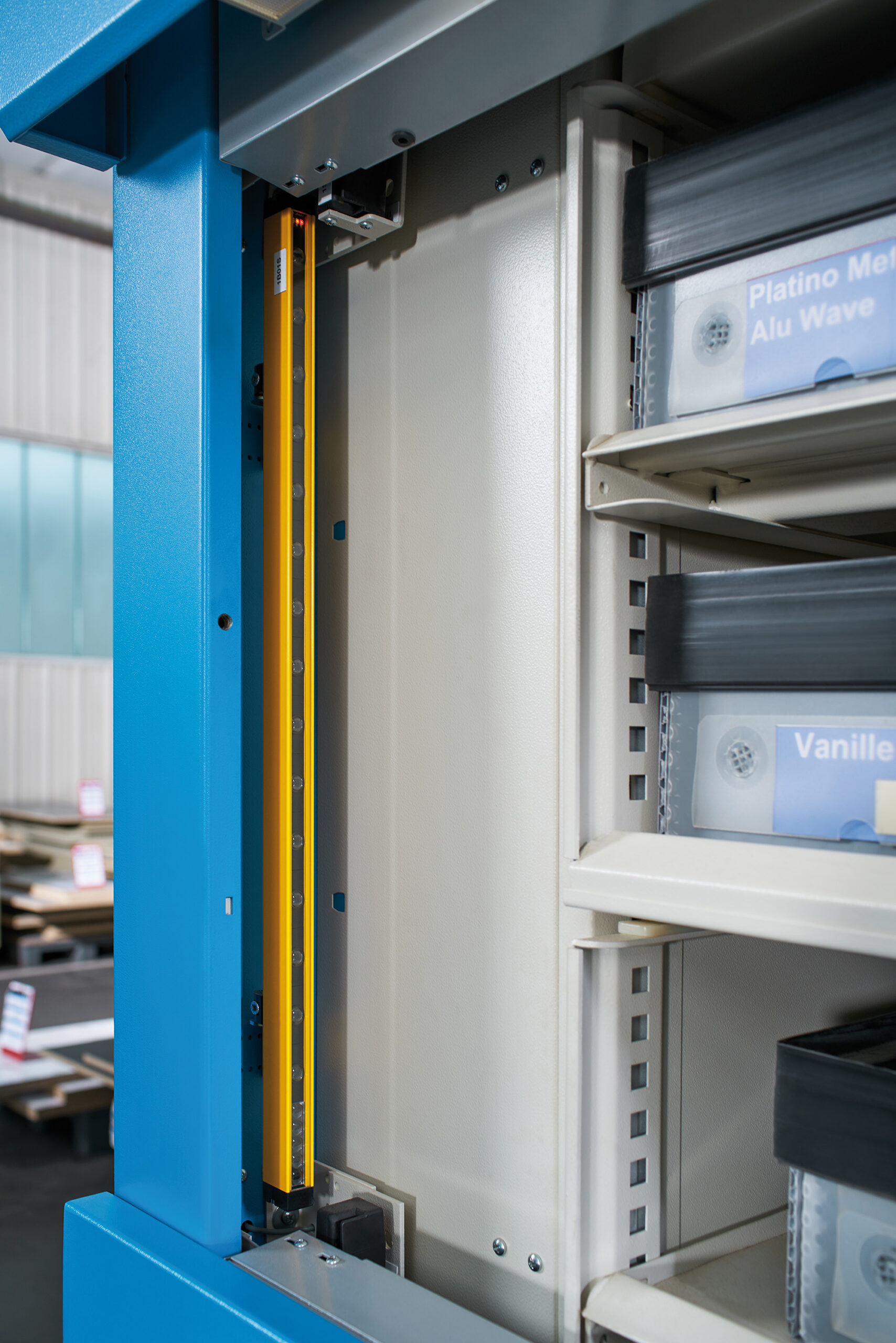 The stable and intelligent design of the Hänel Rotomat® results in high levels of reliability and a long service life. A light-barrier curtain, along with Hänel’s ergonomic safety switch, provides for maximum user protection during put and pick operations.