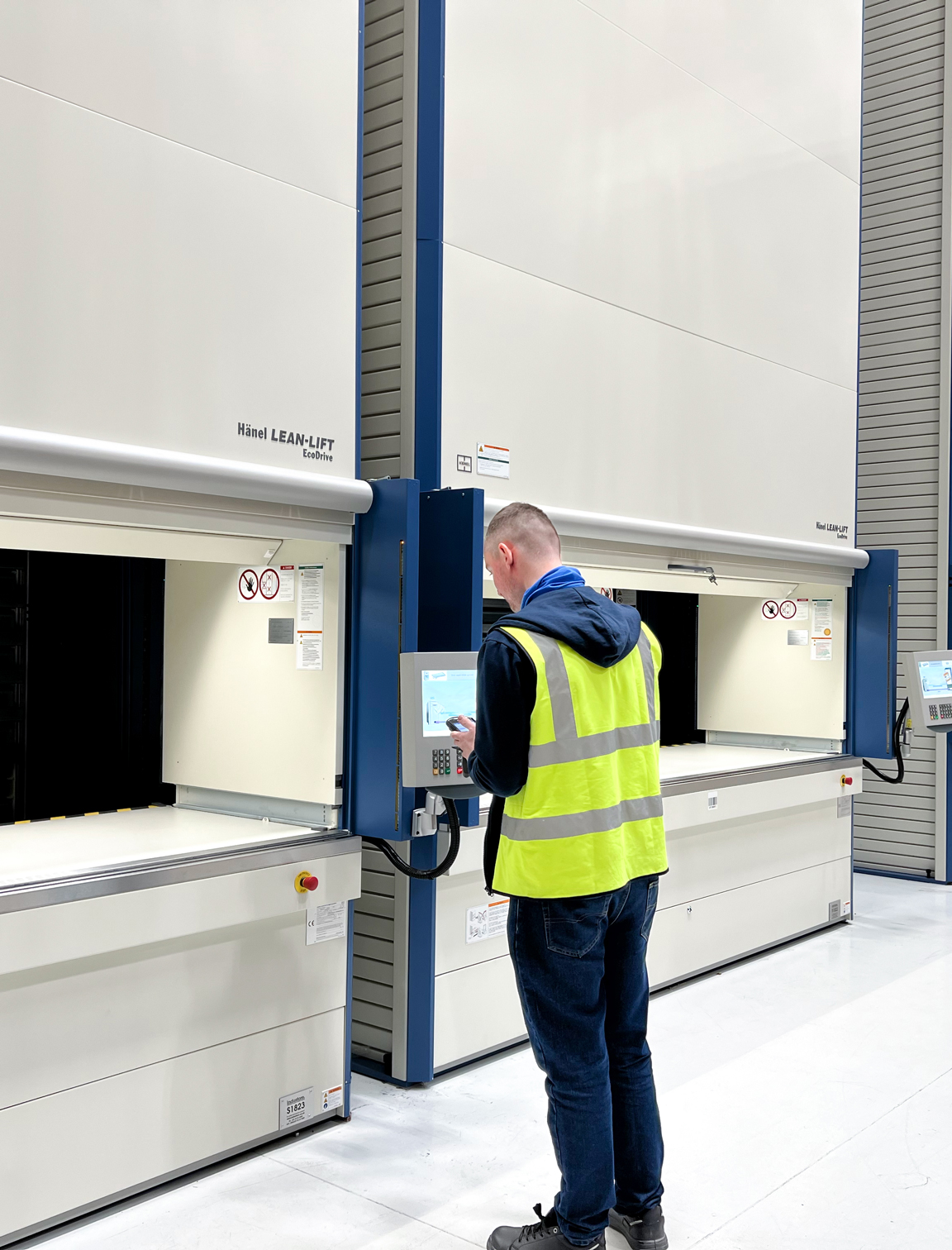 The Lean-Lift retrieval process is largely an automatic one. For the benefit of security and traceability, an operator must sign into the Lean-Lift, in order to gain access to any files – in this case, with a username and password, though other methods (such as RFID cards) are available. The operator is then instructed, either to ‘store’ or ‘retrieve’ – and the machine acts accordingly.